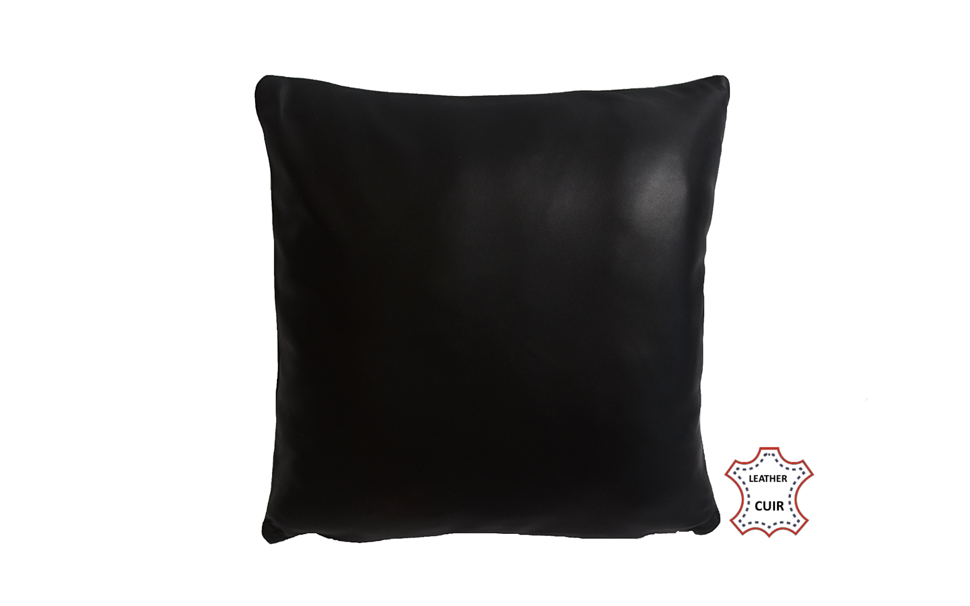 Housse de coussin en cuir d'agneau nappa noir sur les deux faces.