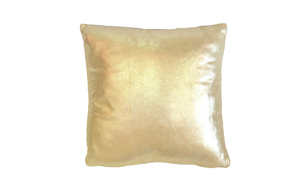 Housse de coussin en cuir d'agneau suède doré métallisé sur les deux faces.