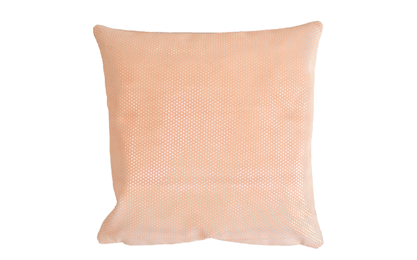 Housse de coussin en cuir de veau suède rose pâle imprimé pois brillants sur les deux faces.