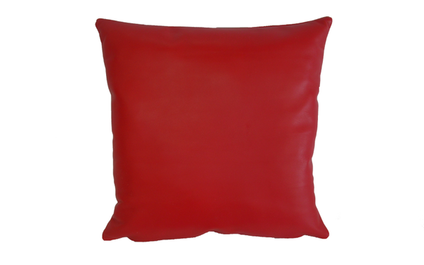 Housse de coussin en cuir d'agneau nappa srouge coquelicot sur les deux faces.