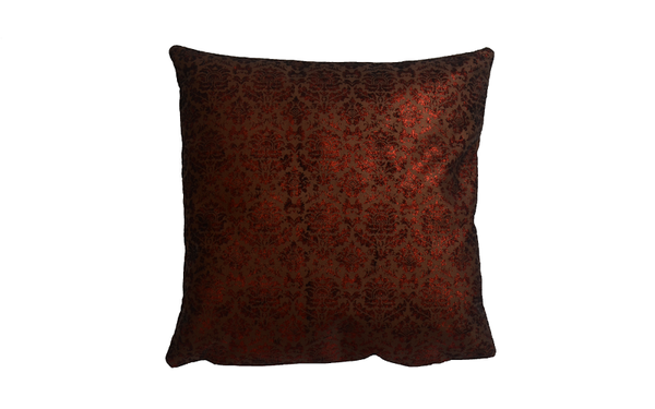Coussin en cuir chocolat imprimé motif gothique rouge métallisé