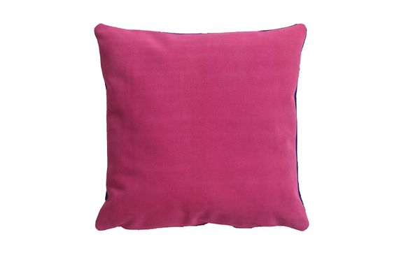 Housse de coussin en cuir de veau suède lavande motif fleur sur une face et cuir de veau suède rose sur l'autre face.