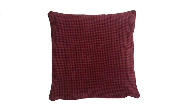 Coussin en cuir suède bordeaux motif pied de poule noir