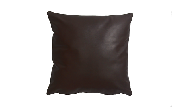 Housse de coussin en cuir de veau suède écru imprimé motif argent métallisé sur une face et cuir de chèvre lisse marron foncé sur l'autre face.
