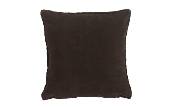 Housse de coussin en peau de mouton lainé mérinos noir pour une face et en cuir d'agneau nubbuck noir pour l'autre face.