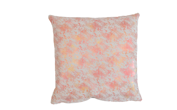 Housse de coussin en cuir d'agneau velours blanc imprimé python sur les 2 faces.