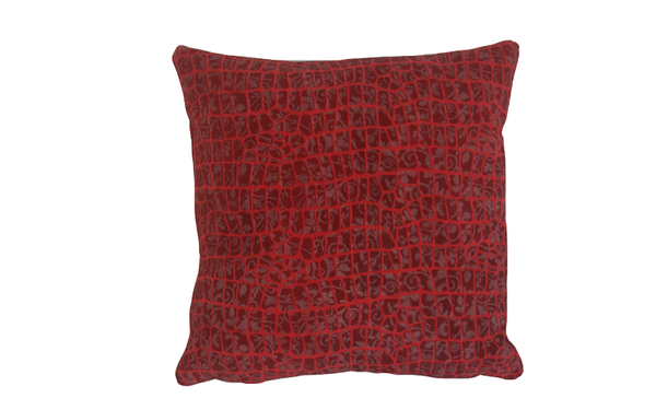 Coussin en cuir suède bordeaux aux motifs crocodile et fleur